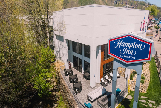 Nestled along a scenic mountain creek, Hampton Inn Gatlinburg features pet-friendly rooms, creekside views, free breakfast, an outdoor pool, and easy access from Great Smoky Mountains National Park and the Ober Gatlinburg Aerial Tramway.